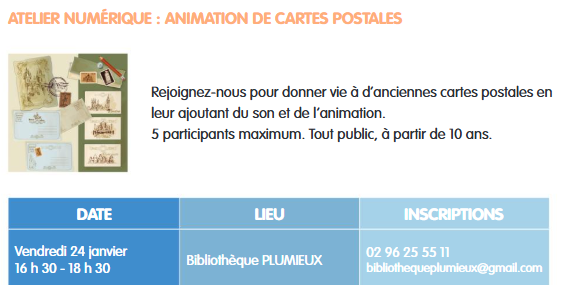 Les ateliers ( cartes postales sonores et initiation vitrail ) sont limités en place donc pensez à vous inscrire si vous souhaitez y participer. Il reste encore des places !
