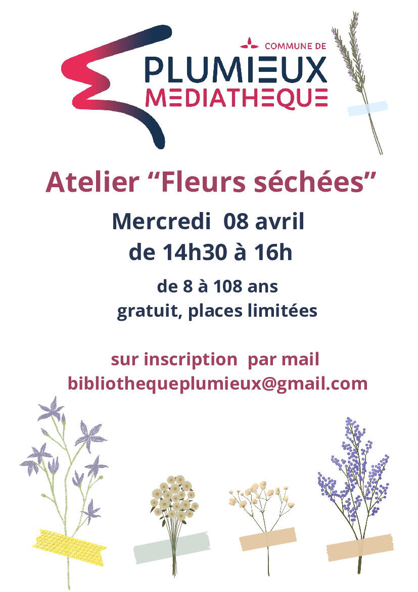 Pour fêter le printemps, la médiathèque vous propose un atelier "fleurs séchées" le mercredi 08 avril de 14h30 à 16h.🌼