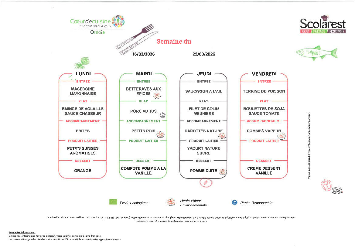 Menus de la cantine semaine 12