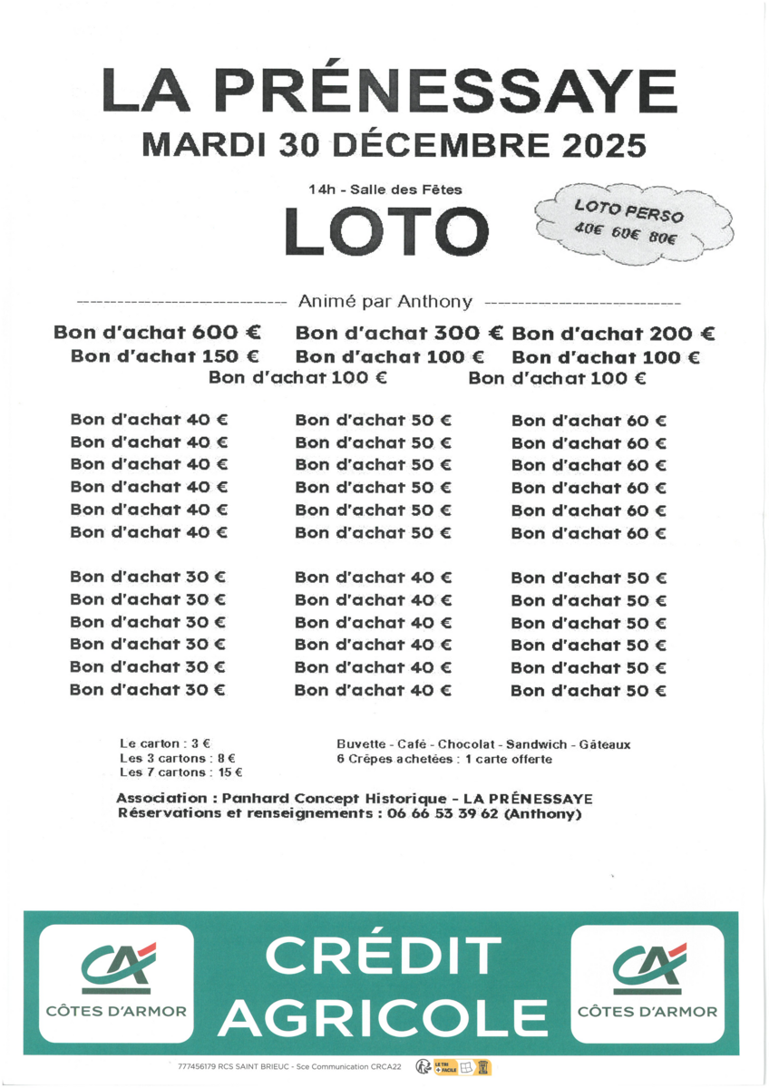 Panhard Concept Historique organise un loto le mardi 30 décembre à partir de 14h à la salle multifonctions.
