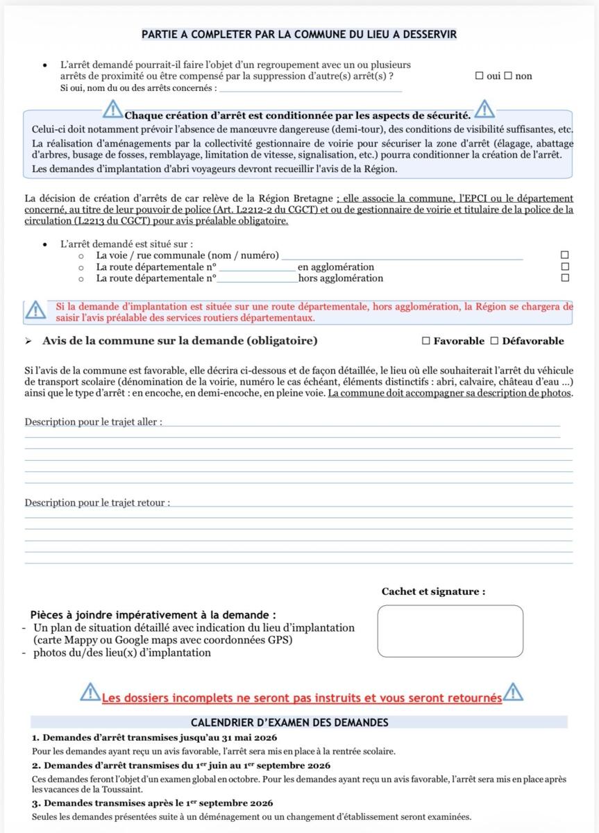Demande d’arrêt de bus : information de la Région