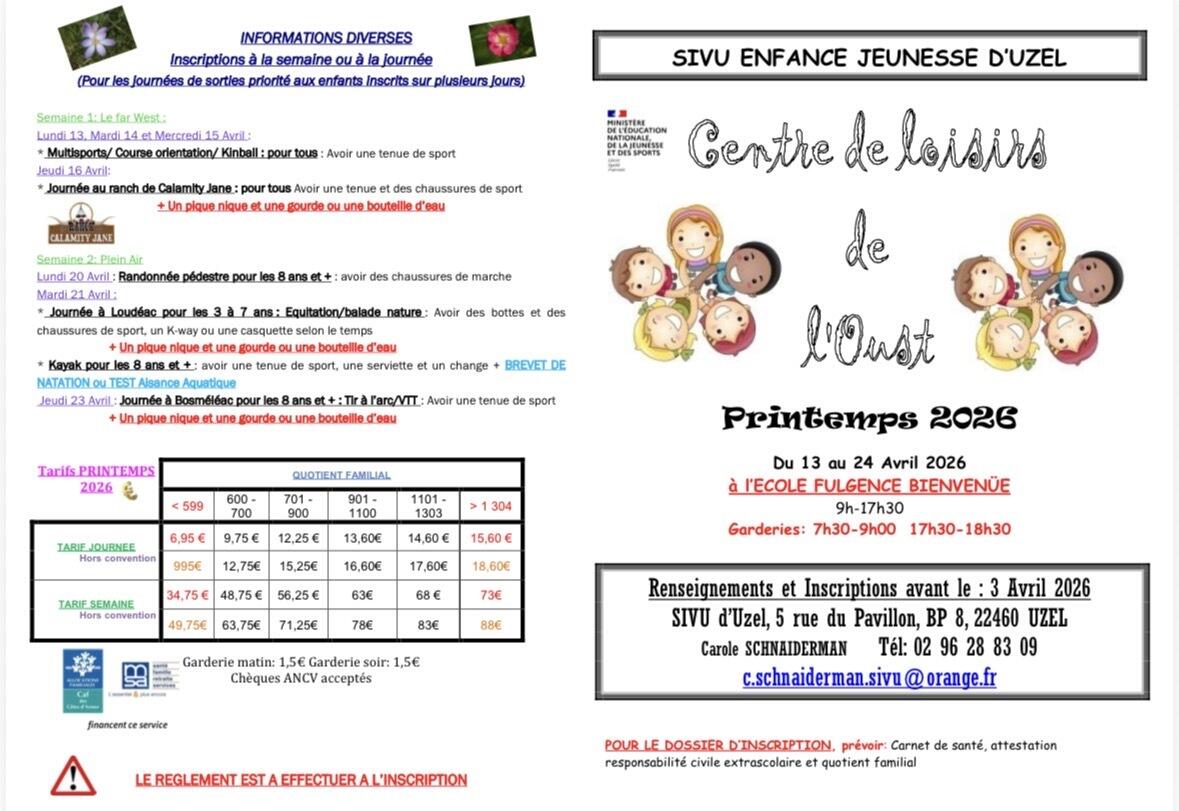 Programme du CLO pour les vacances de printemps