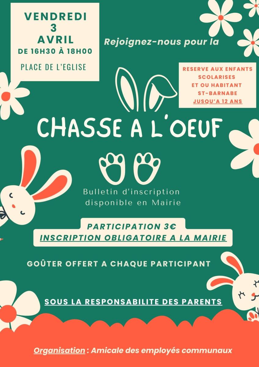 Votre mairie / Actualités / CHASSE A L'OEUF - VENDREDI 3 AVRIL 2026