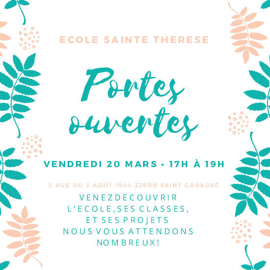 Portes Ouvertes École Sainte-Thérèse 17/03/2026 L'école Sainte-Thérèse organise une porte ouverte le vendredi 20 mars de 17h à 19h.