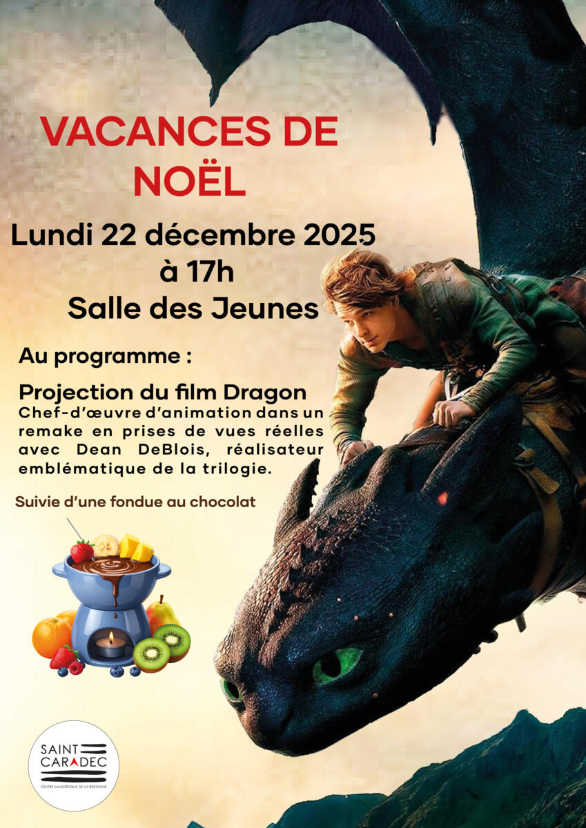 Vacances de Noël - Animation jeunesse 🎉🎅🎄 15/12/2025 Projection du film Dragon le lundi 22 décembre à 17h00 à la salle des jeunes 🎬
