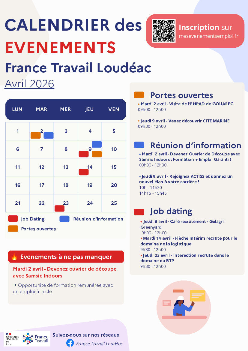 Calendrier des évènements - Agence France Travail Loudéac