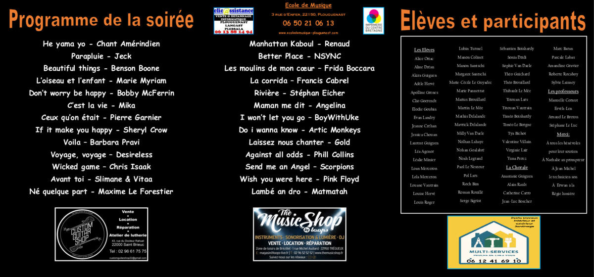 L'ECOLE DE MUSIQUE DE PLOUGUENAST 17/05/2025 Concert de fin d’année des élèves de l’école de musique de Plouguenast !