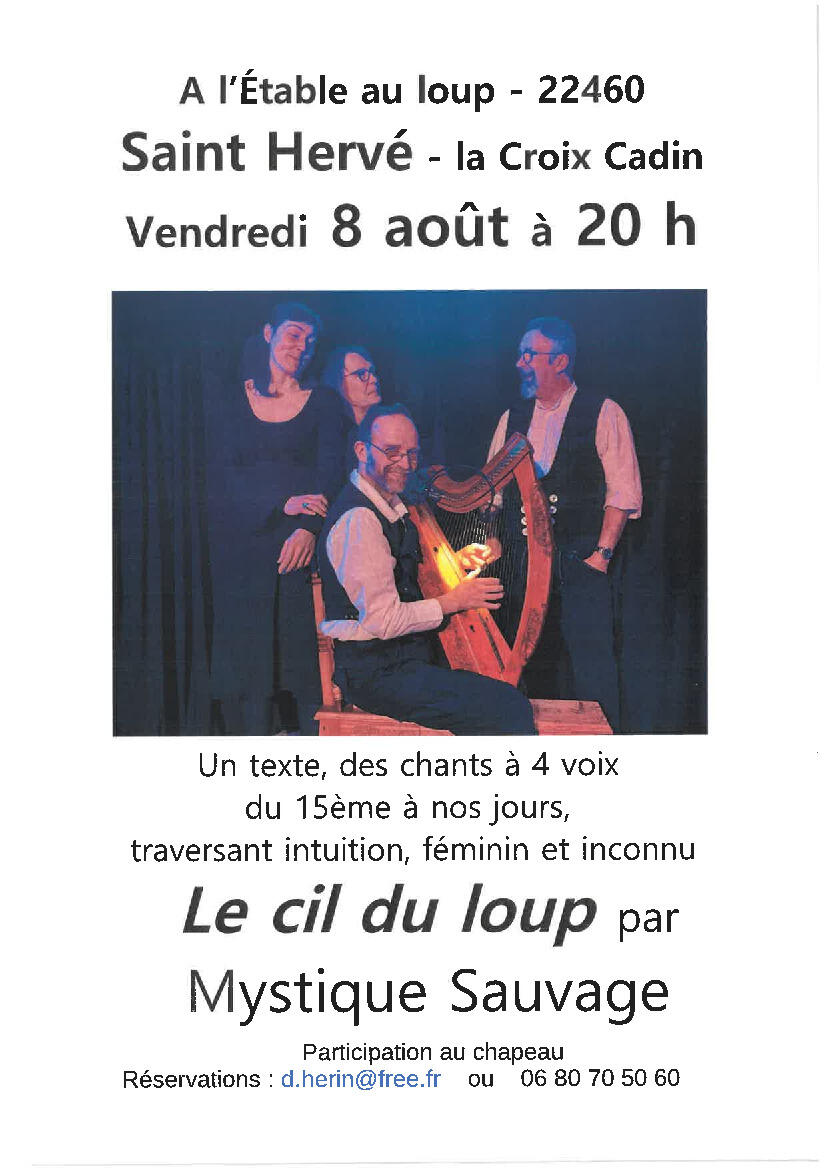 L'étape au Loup 09/07/2025 Venez découvrir un spectacle de chants à 4voix Le cil du Loup par Mystique Sauvage le 8 août à 20H