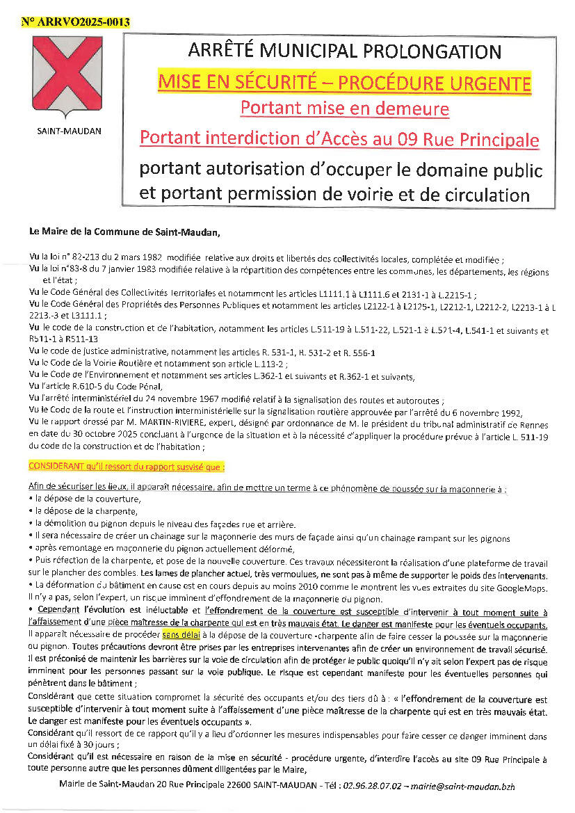 MISE EN SÉCURITÉ - PROCÉDURE D'URGENCE
