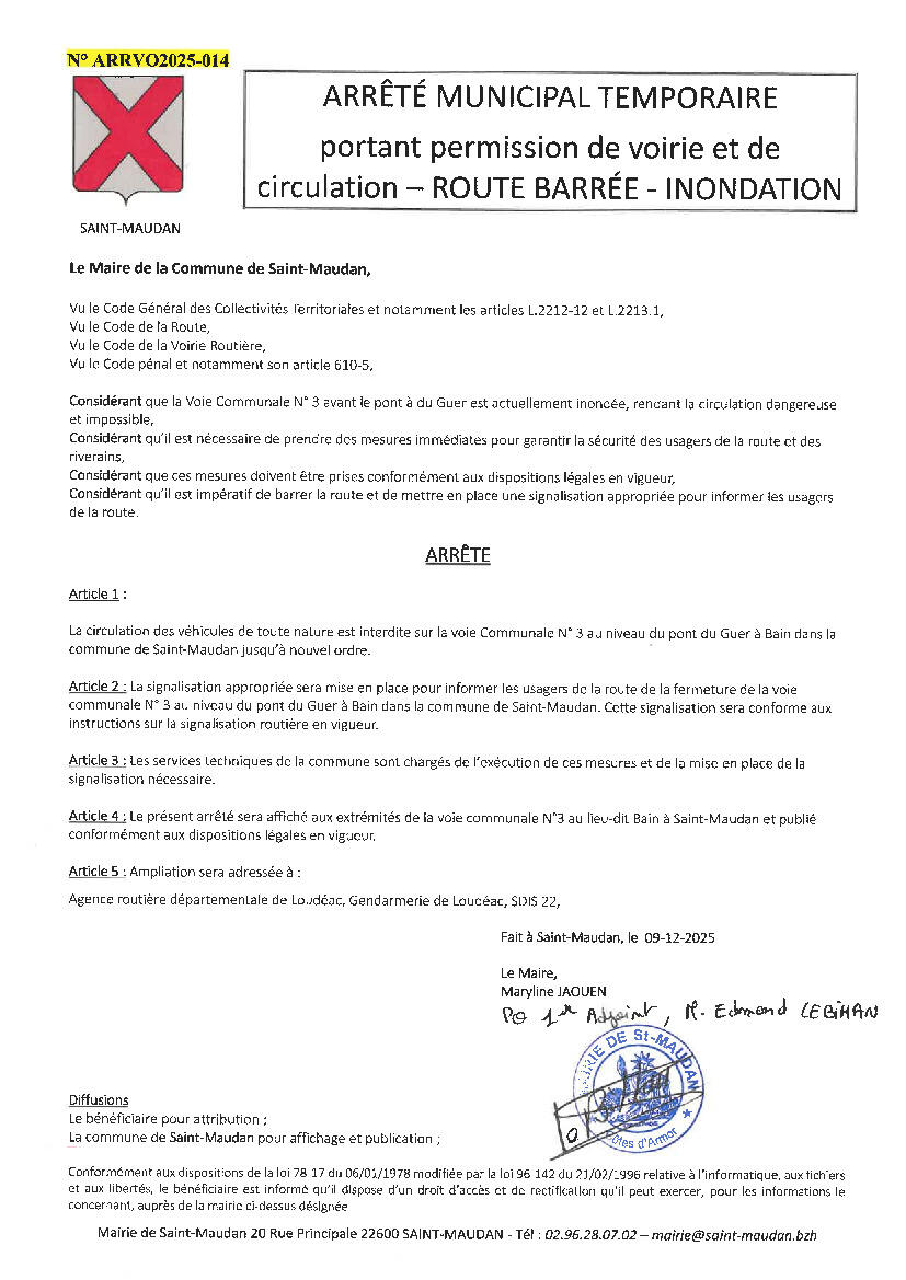 ROUTE BARRÉE POUR INONDATION LIEU-DIT BAIN
