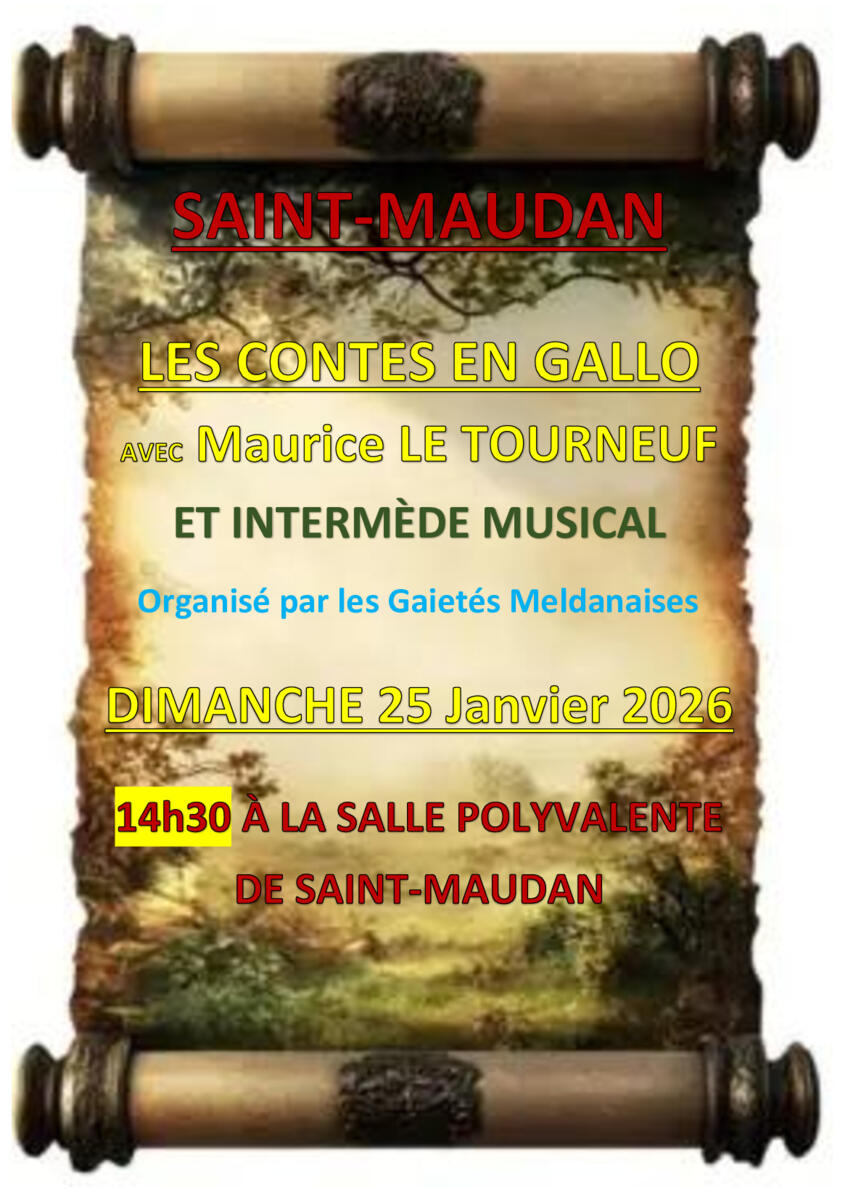 Venez écouter du gallo tout un après-midi avec le conteur Maurice Le Tourneuf à la salle des fêtes de Saint-Maudan le 25 janvier 2026 à partir de 14h30.