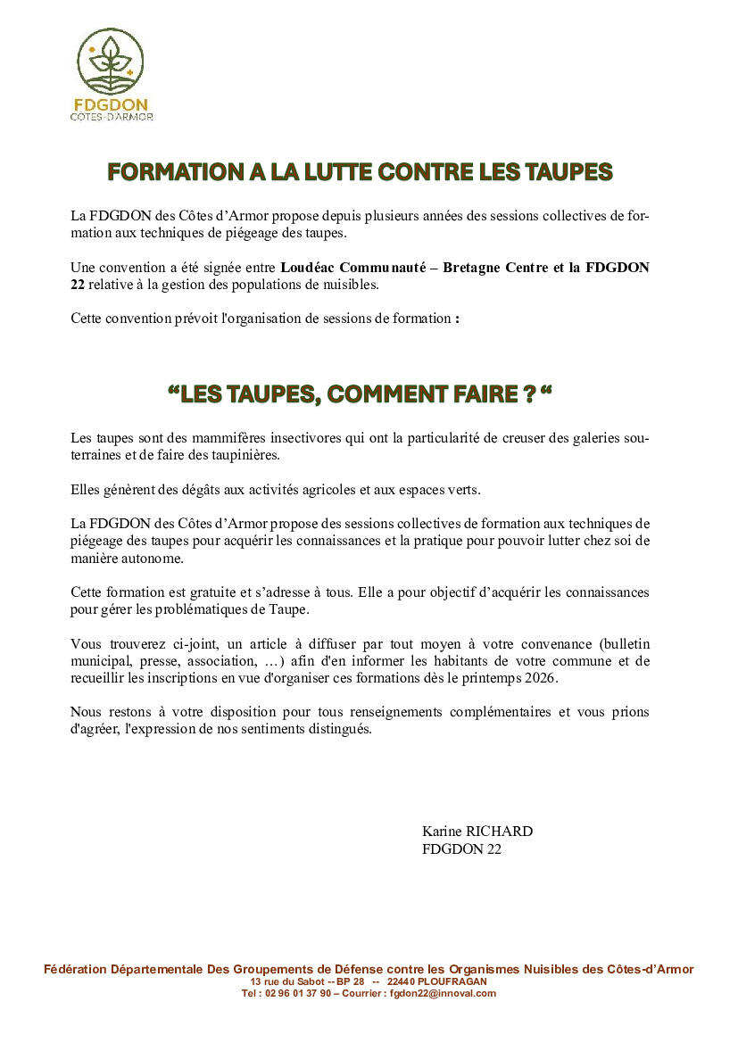 FORMATION A LA LUTTE CONTRE LES TAUPES