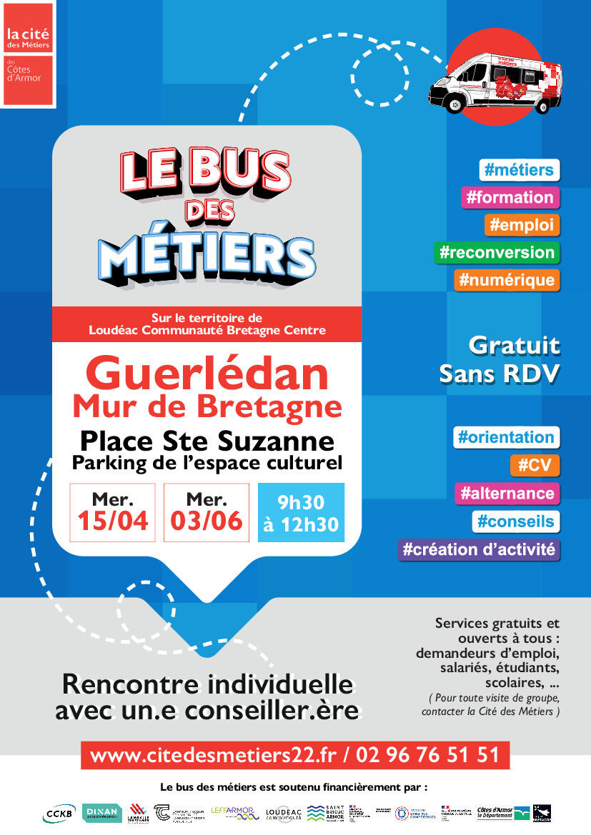 Le Bus des Métiers 07/04/2026 Le Bus des Métiers sera présent sur votre territoire les mercredis 15 avril et 3 juin à Guerlédan