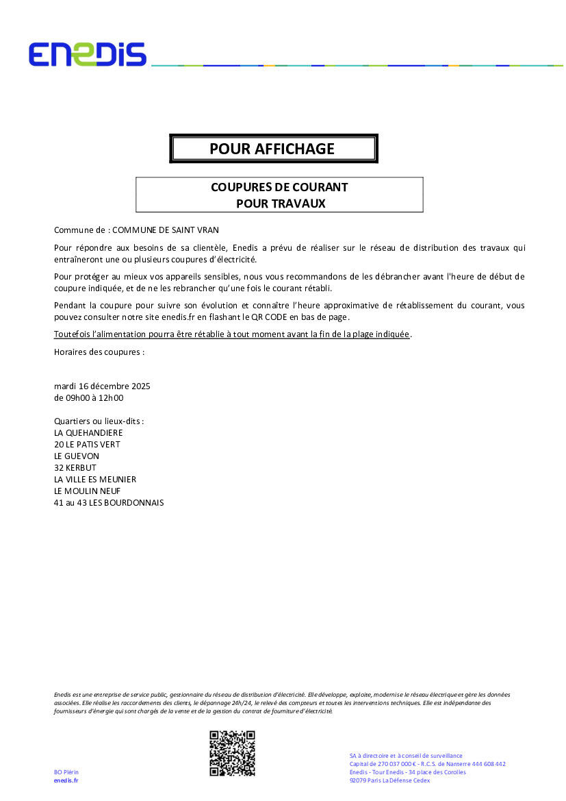 Toute l'actualité de Mairie de Saint-Vran