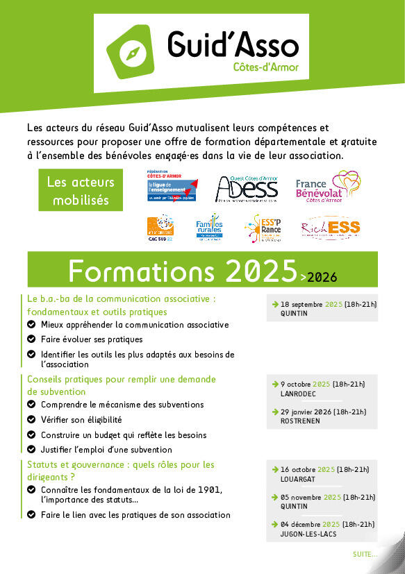 Le réseau Guid’Asso des Côtes d’Armor mutualise ses formations à l’attention des bénévoles associatifs.