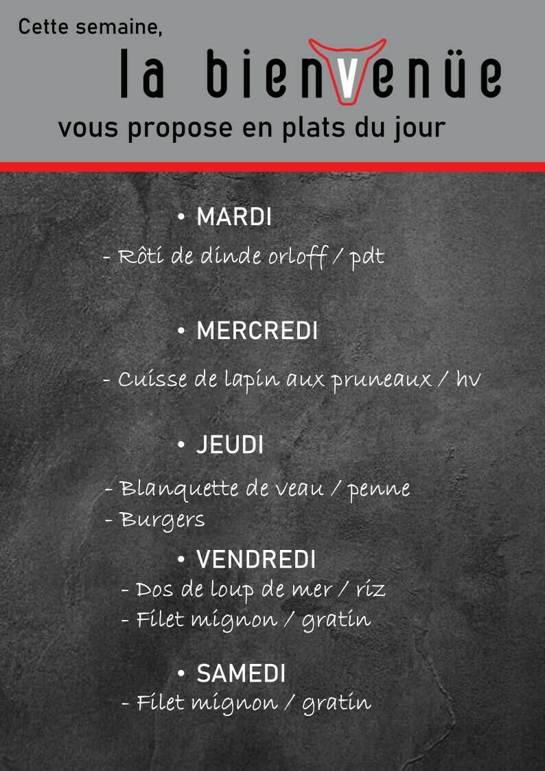 Les plats à emporter de la semaine et une information importante.