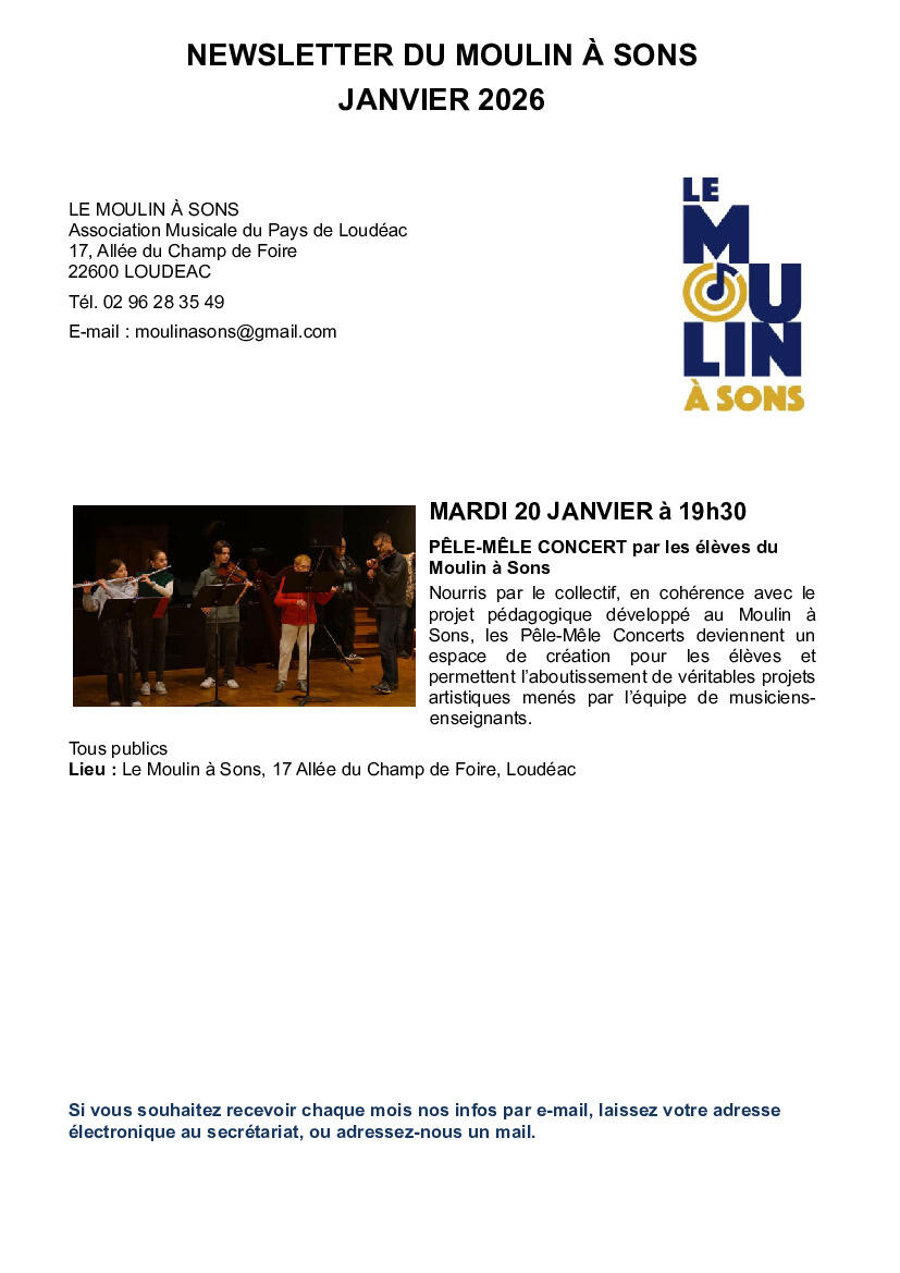 Votre mairie / Actualités / Le Moulin à Sons - Programme du mois de janvier