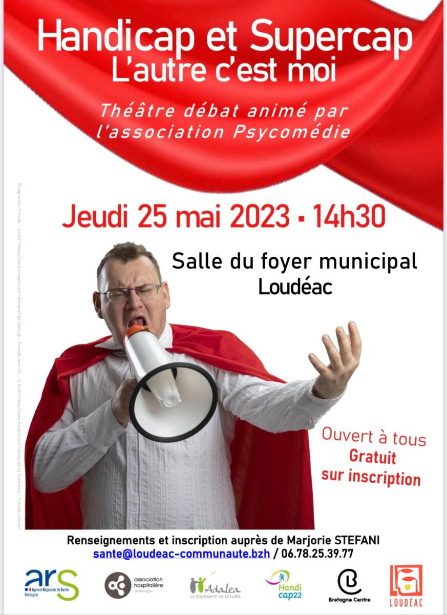 Le pôle SANTÉ de LCBC vous propose un théâtre débat autour du handicap le jeudi 25 mai 14h30 à Loudėac, salle du foyer municipal.Entrée gratuite sur inscription.