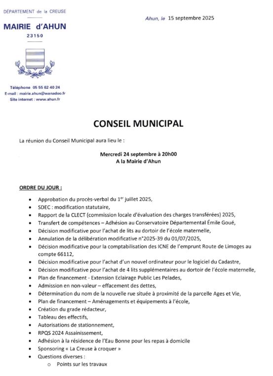 Conseil Municipal du 24 septembre 2025 à 20h00