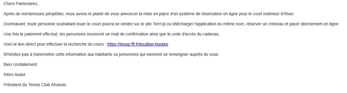 Votre mairie / Actualités / Location en ligne du terrain de tennis
