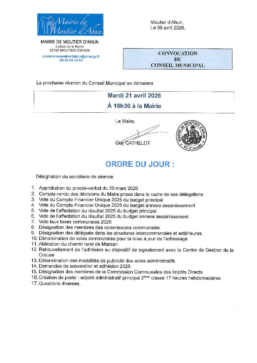 Conseil muncipal du 21 avril 2026