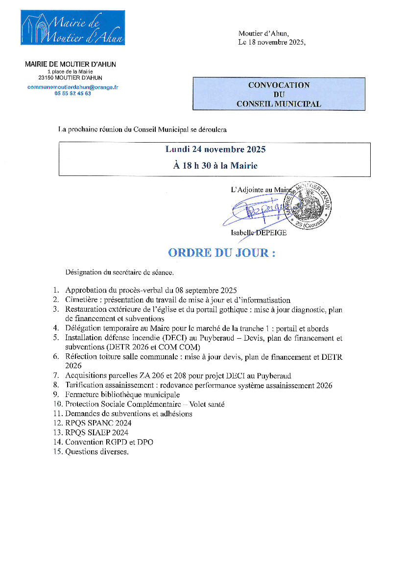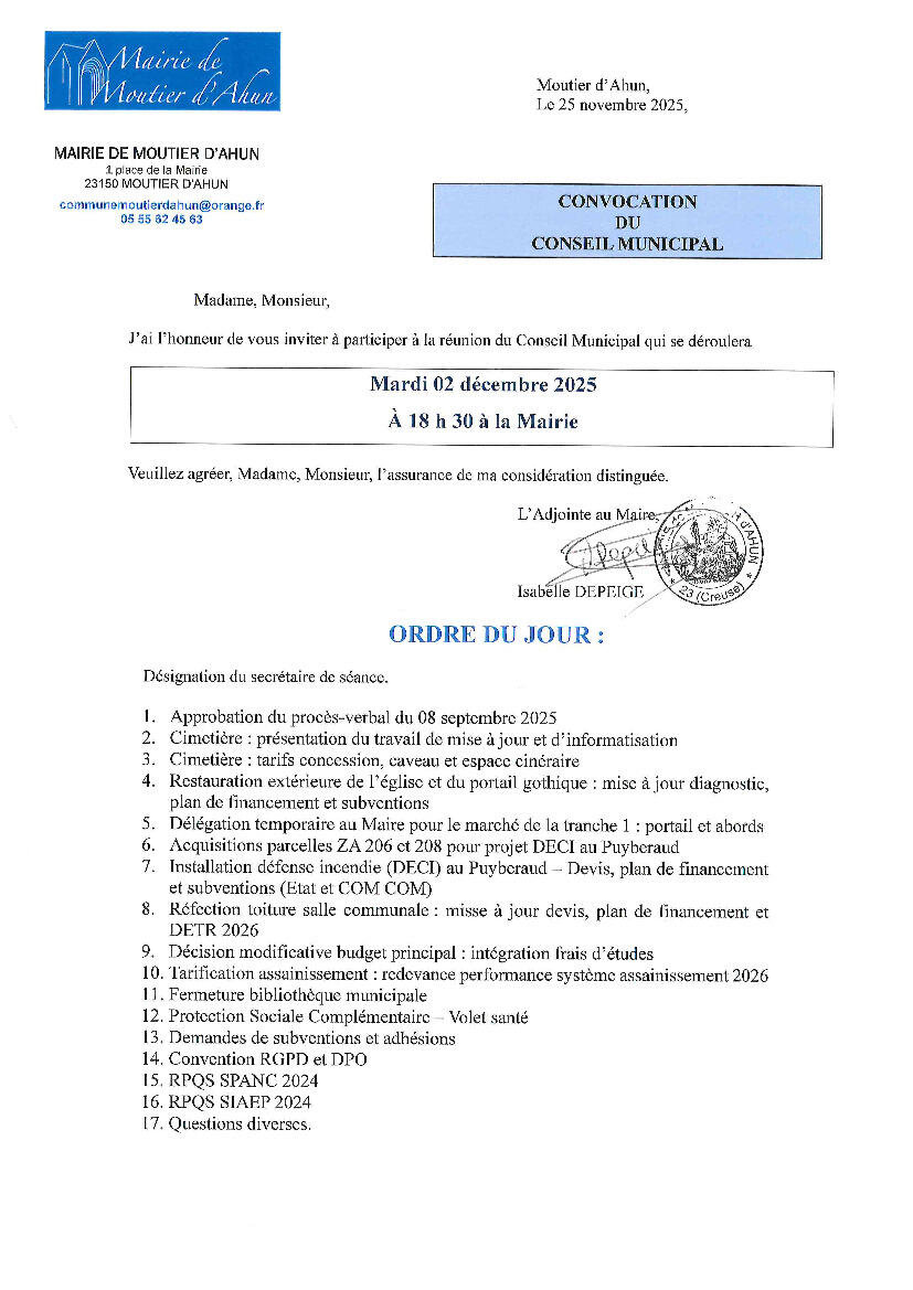 Toute l'actualité de Mairie de Moutier-d'Ahun