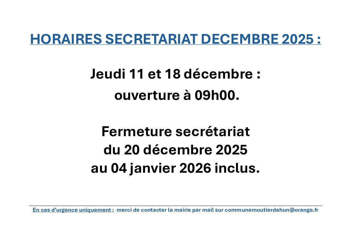 Horaires secrétariat décembre 2025