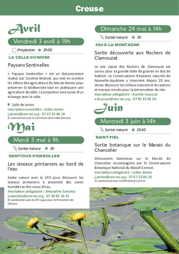 Calendrier Conservatoire Espaces Naturels 13/04/2026 Voici le calendrier nature du Conservatoire d'Espaces Naturels de Nouvelle-Aquitaine.