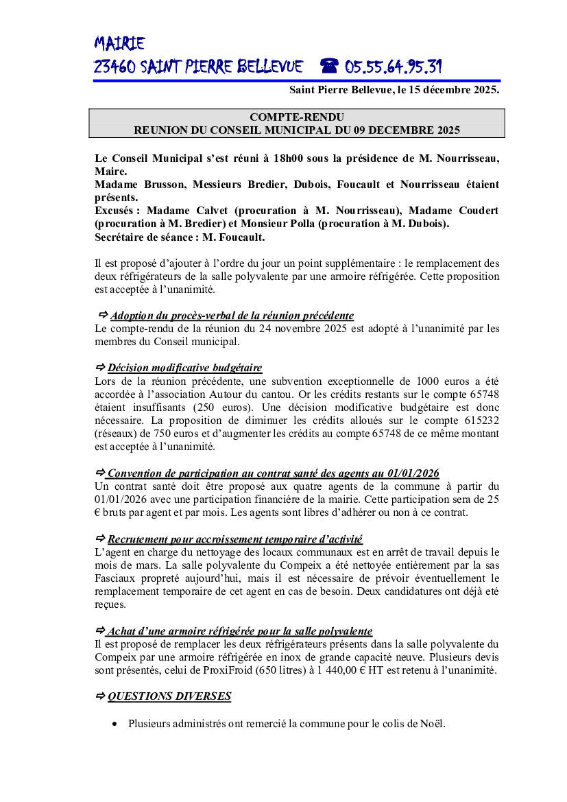 Compte Rendu Conseil Municipal Du 09/12/2025