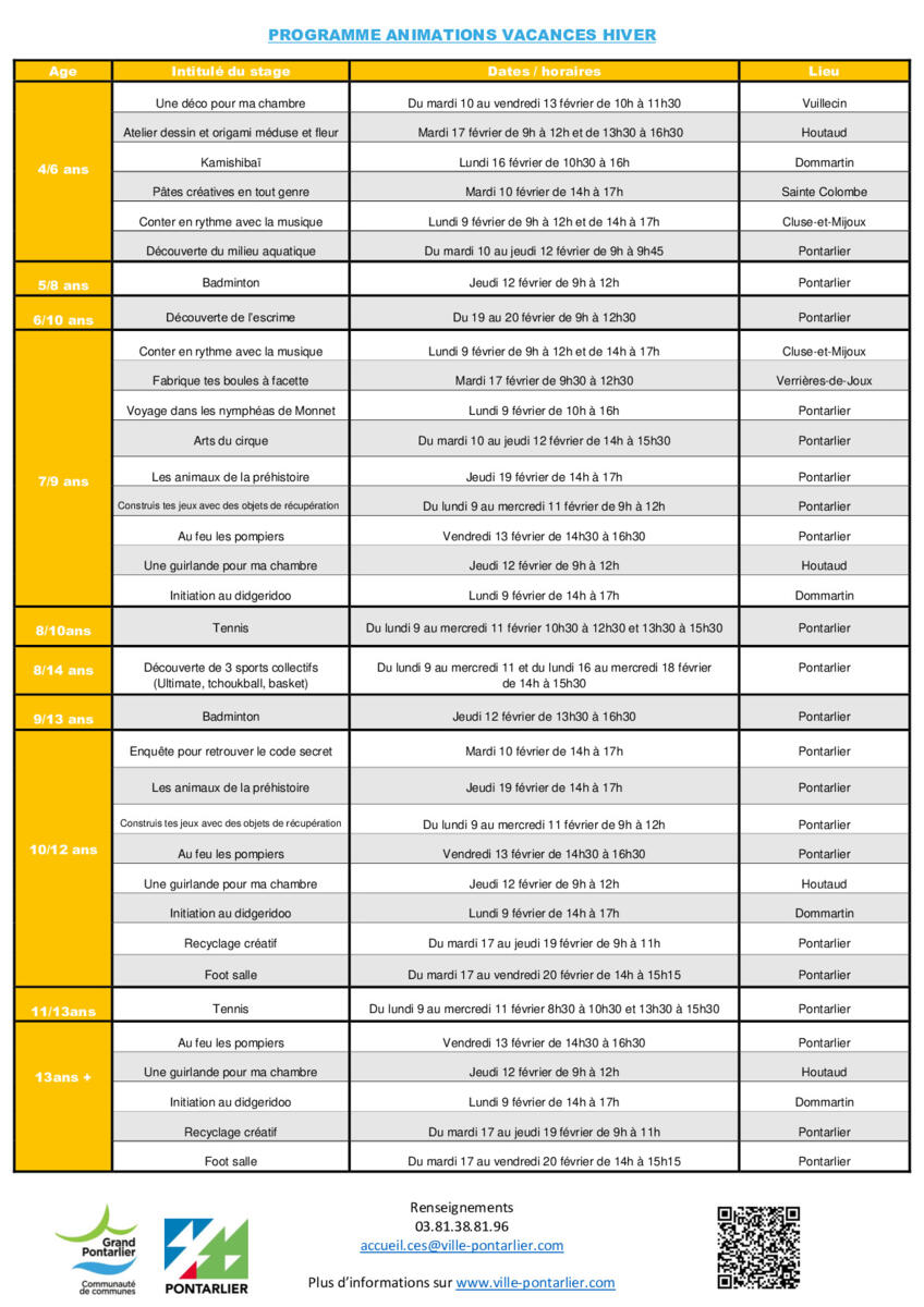Animations vacances de Février 2026