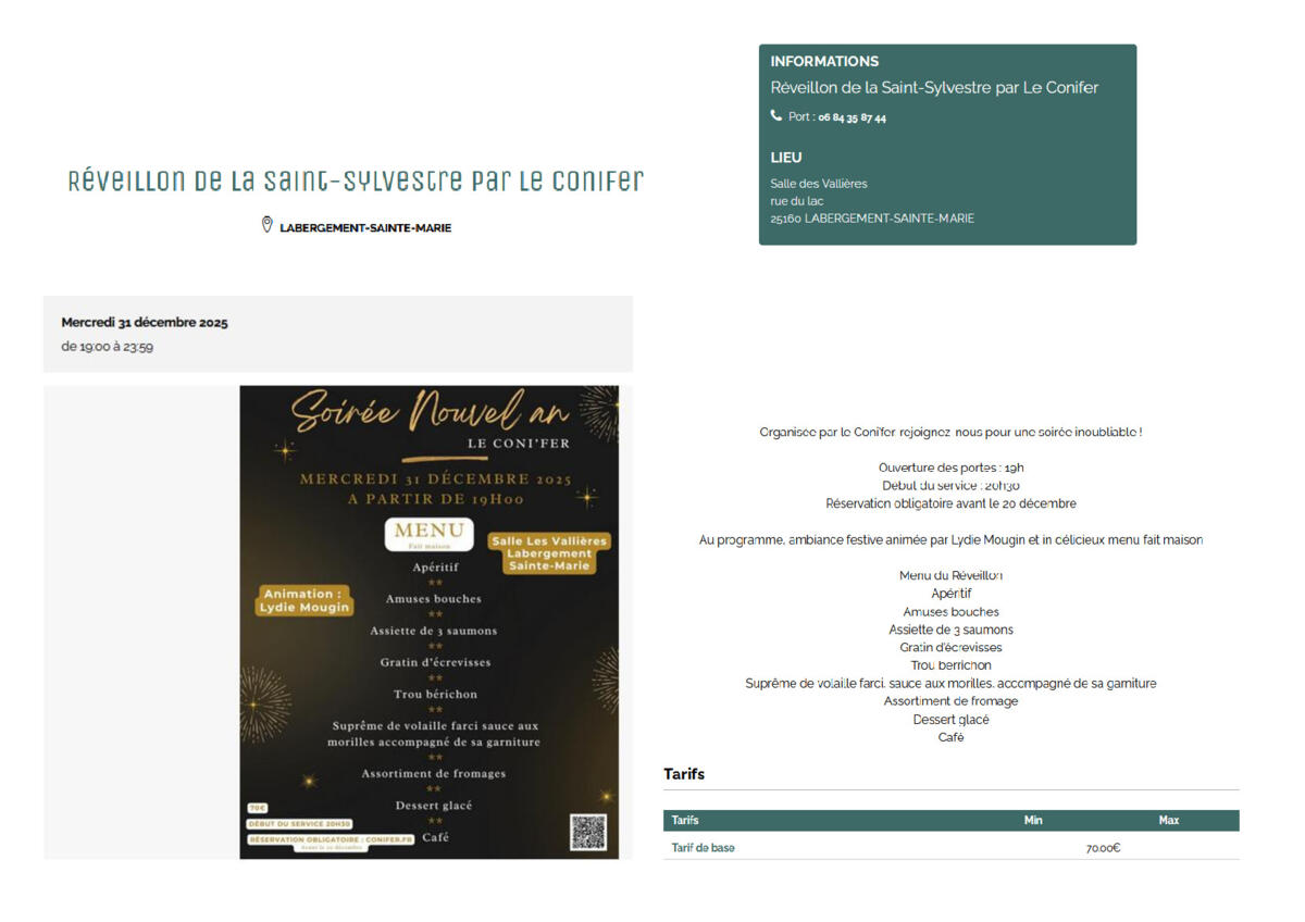 Réveillon Nouvel an CONIFER