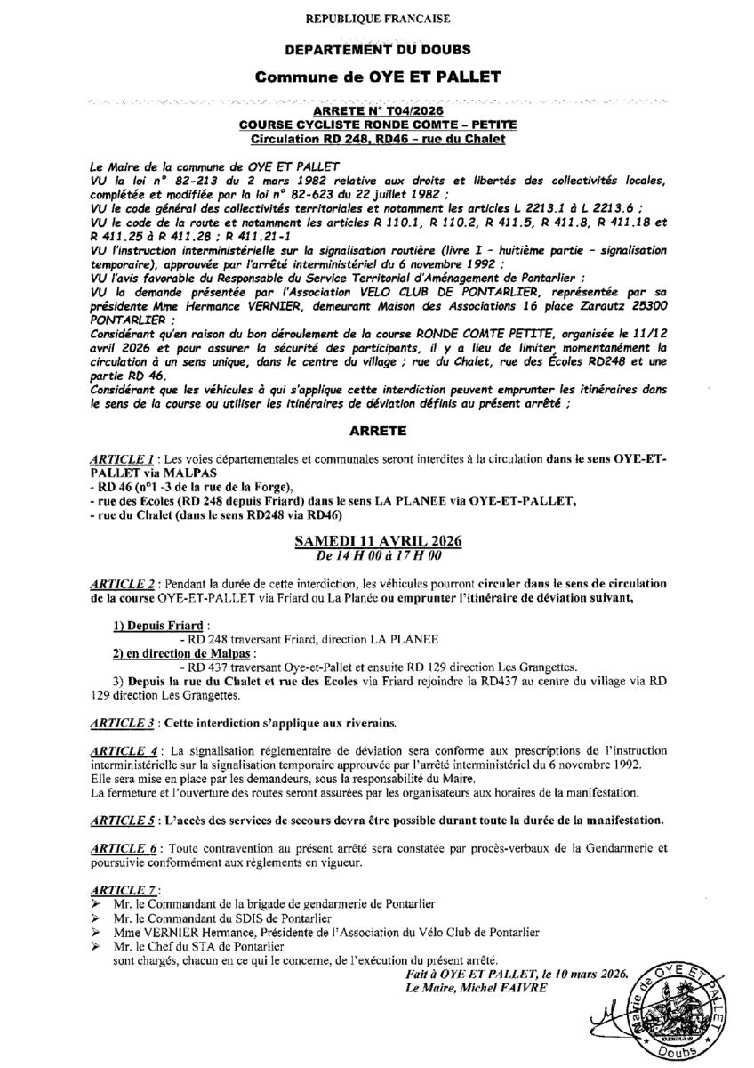 Toute l'actualité de Mairie d'Oye-et-Pallet