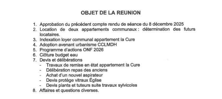 Le Conseil Municipal de la commune se réunit en séance ordinaire à la Mairie le