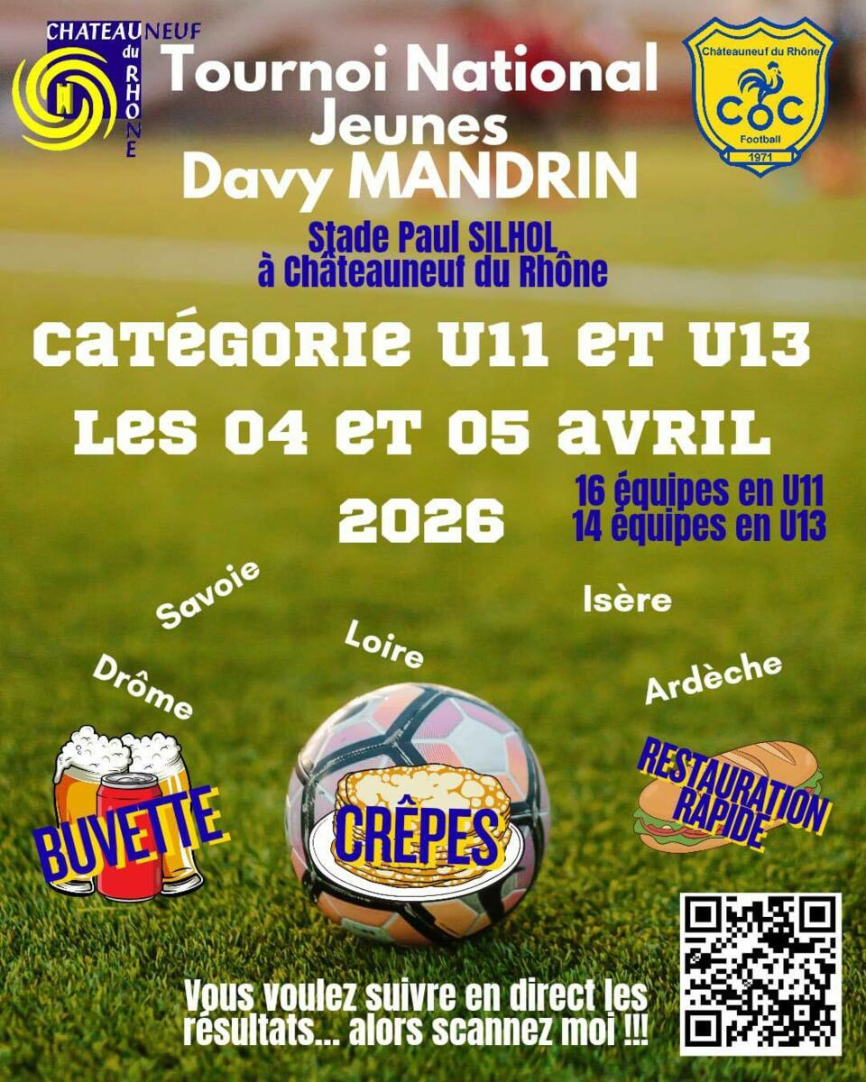 ➡La municipalité a le plaisir de vous informer que l’association C.O.C Football organise son traditionnel Tournoi National Jeunes « Davy MANDRIN », le week-end du 04 et 05 avril 2026 🤩