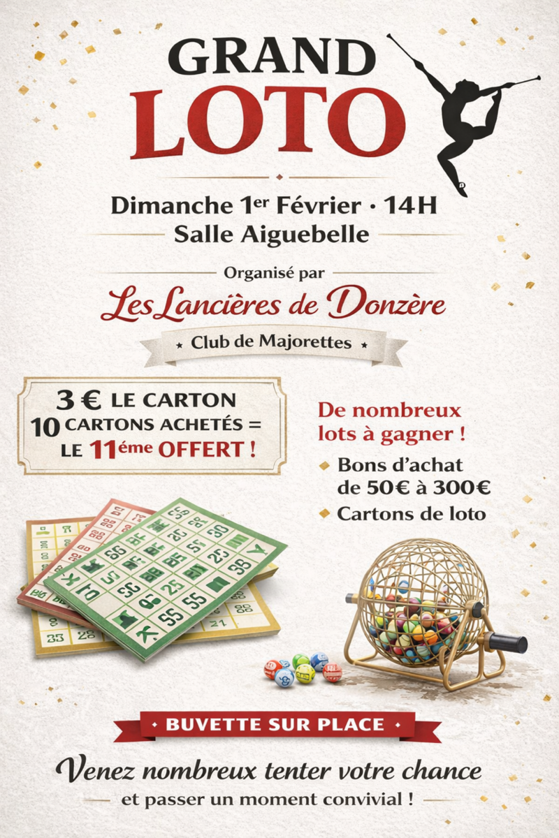 🎁 De nombreux lots à gagner : bons d’achat de 50 € à 300 €, cartons de loto…