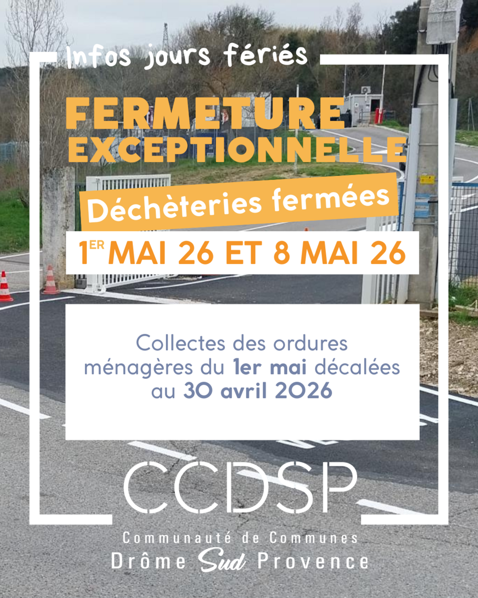 Les quatre déchèteries sur le territoire de la @ccds_p seront exceptionnellement fermées :