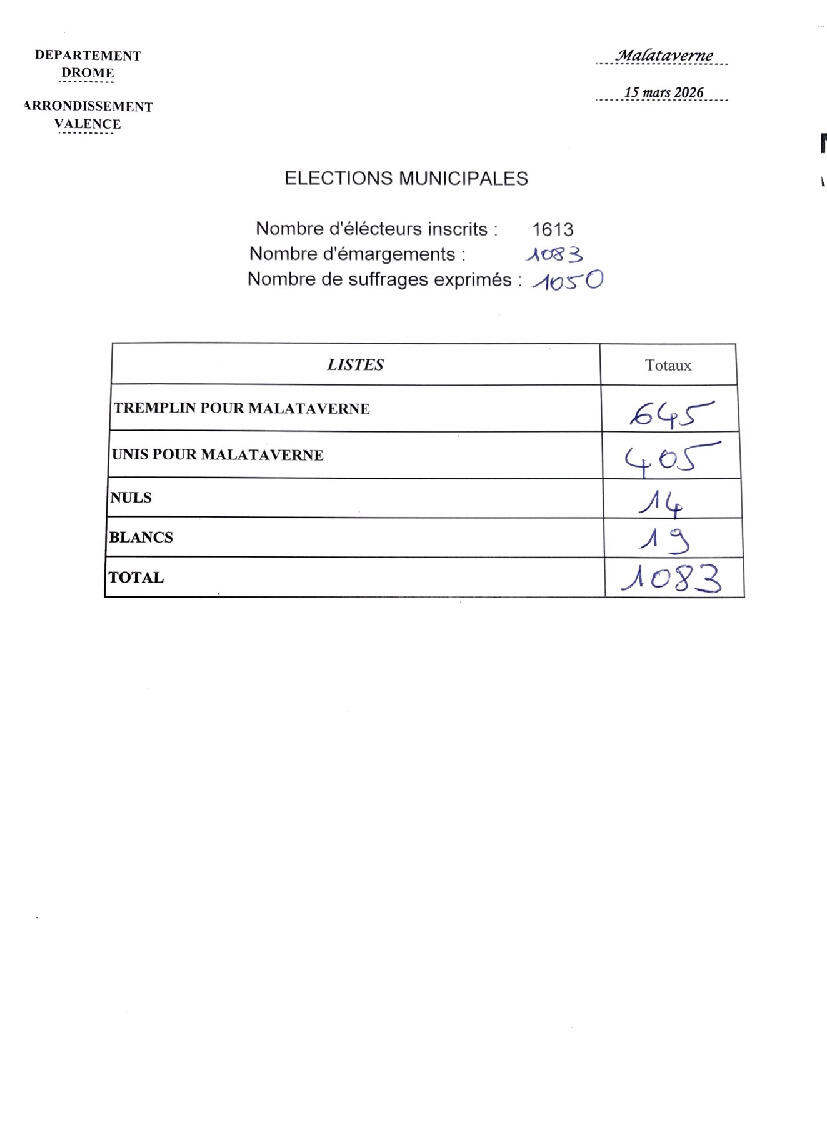 Election Municipale - 15 Mars 2026 15/03/2026 Madame Véronique ALLIEZ-EYGUESIER est élue avec 61% des suffrages exprimés.