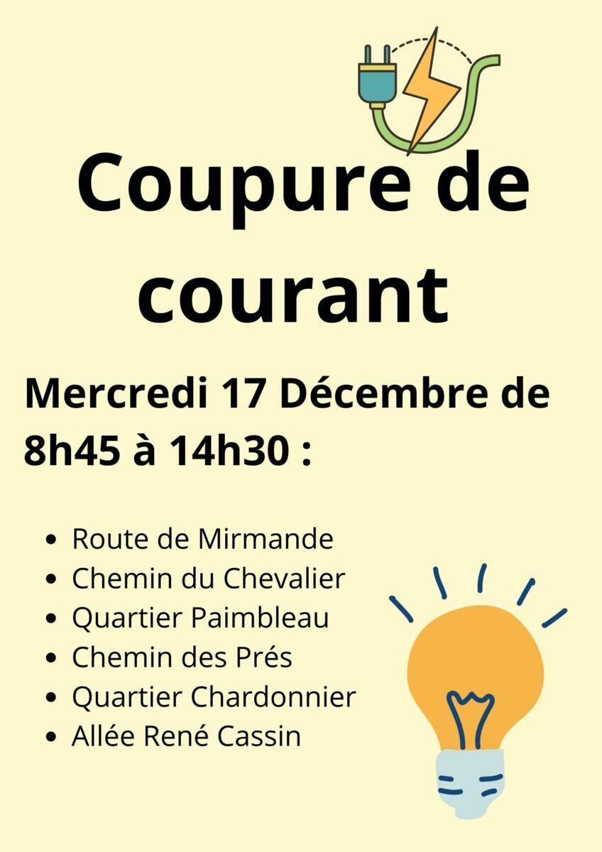 Coupure de courant le Mercredi 17 décembre 2025
