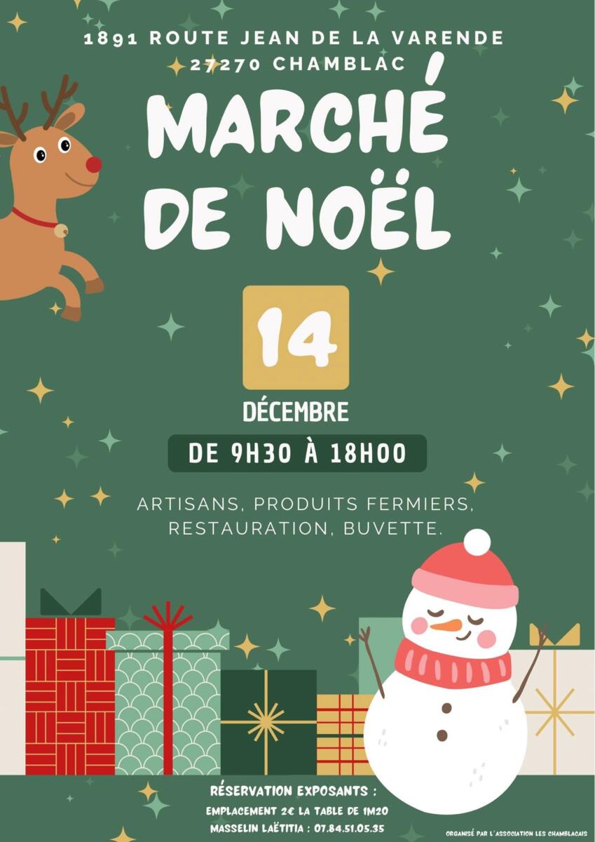 Comme tous les ans, l’association des Chamblacais organise le marché de Noël le dimanche 14 décembre à partir de 9H30 jusqu'à 18H : de nombreux exposants faciliteront vos courses de Noël et une excellente restauration  accompagnera vos achats.