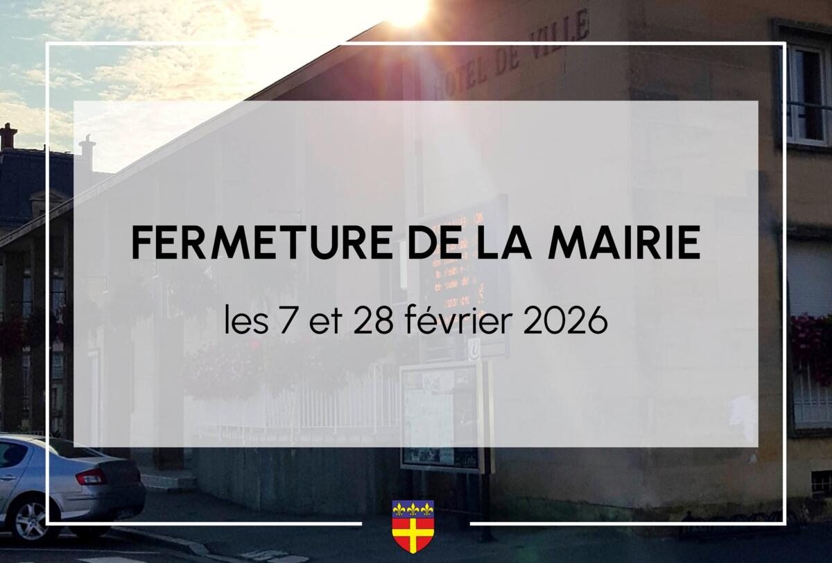 En raison de travaux prévus au sein de la mairie, celle-ci sera exceptionnellement fermée les samedis 7 et 28 février 2026.