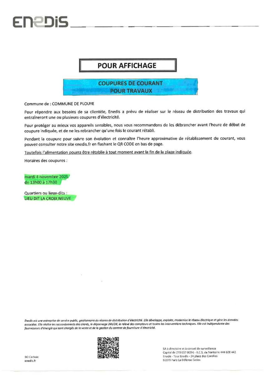 ENEDIS-Coupures de courant pour travaux