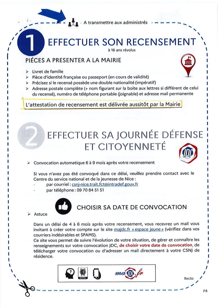 Veuillez trouver ci-joint l’obligation de recensement citoyen pour tout enfant résidant dans la commune et ayant 16 ans révolus.
