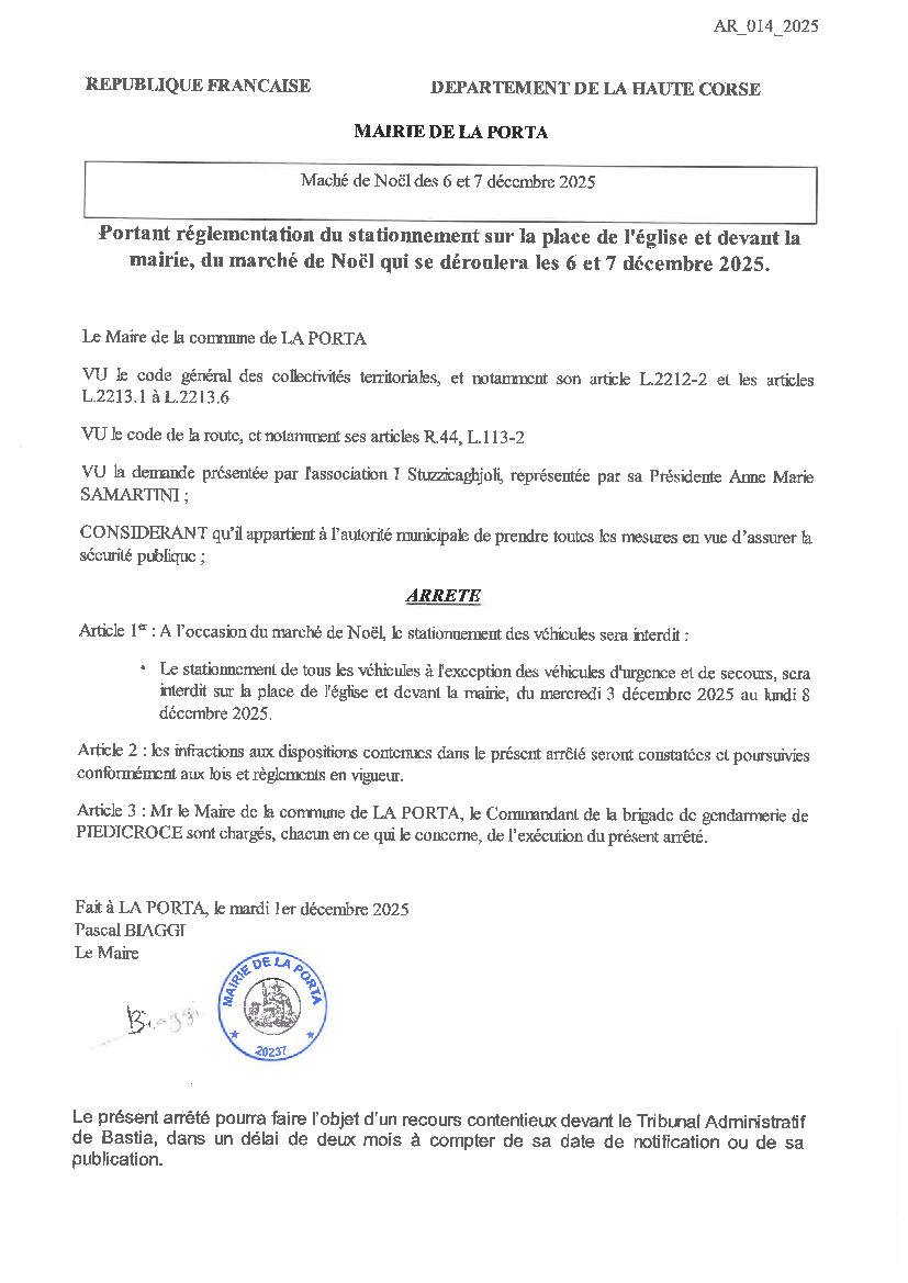 Interdiction de stationner Marché de Noël 2025 à LA PORTA