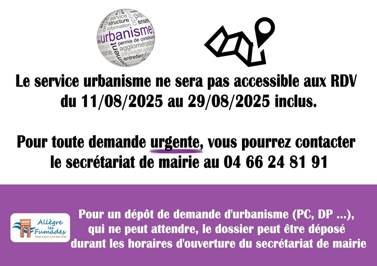 📢 INFORMATION 📢 Fermeture estivale du service urbanisme