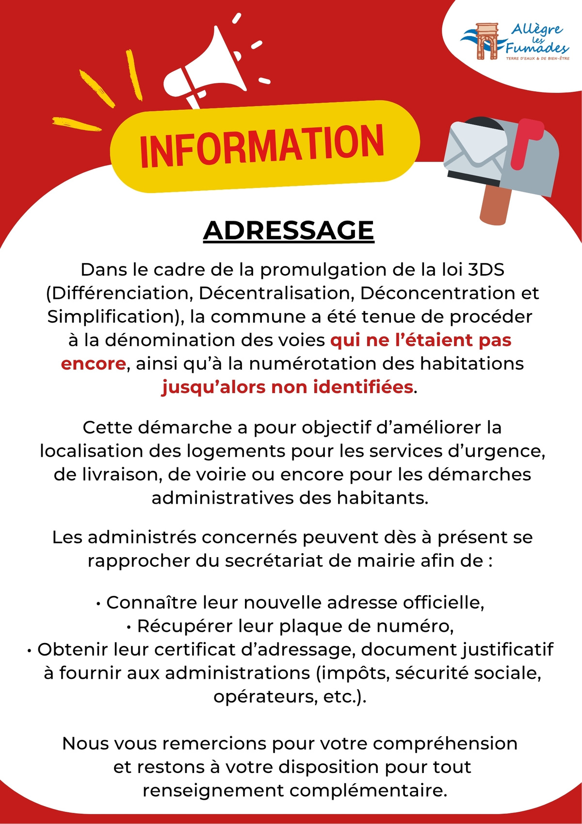 🔴INFORMATION IMPORTANTE – ADRESSAGE🔴