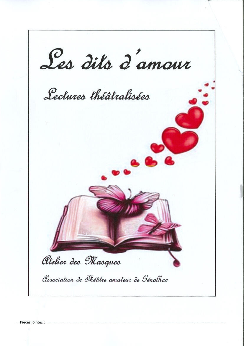 L'Atelier des Masques de Génolhac a le plaisir de vous inviter à son nouveau spectacle "Les Dits d'Amour", joué au chapeau, le Samedi 14 Mars à 20h30 au Cinéma-Théâtre La Forge à Villefort.