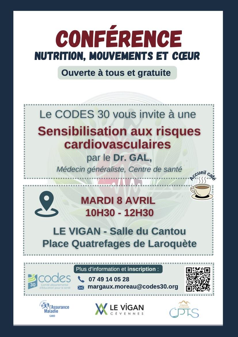 Proposée par le Comité départemental d'éducation pour la santé du Gard (CODES 30), cette conférence animée par le Docteur Gal, médecin généraliste au centre de santé public, a pour but de sensibiliser aux risques cardiovasculaires.
