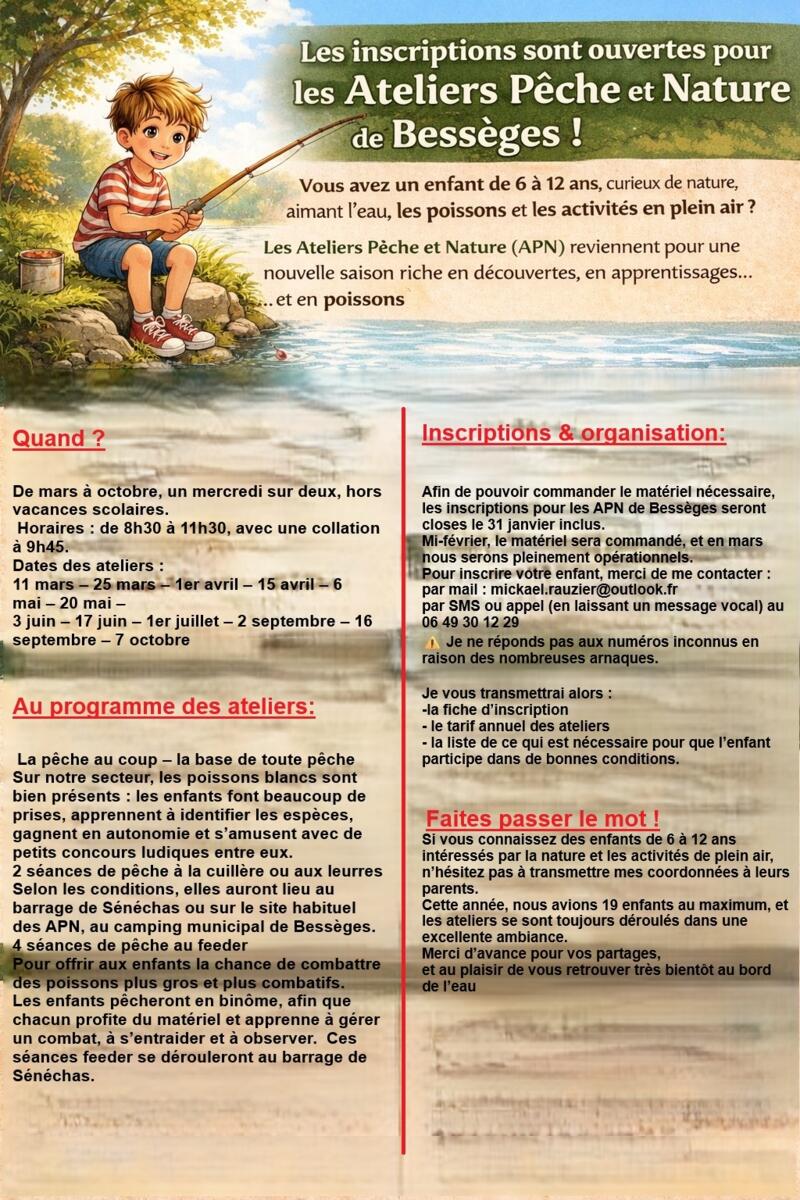 Ateliers pêche et nature pour les enfants : inscriptions
