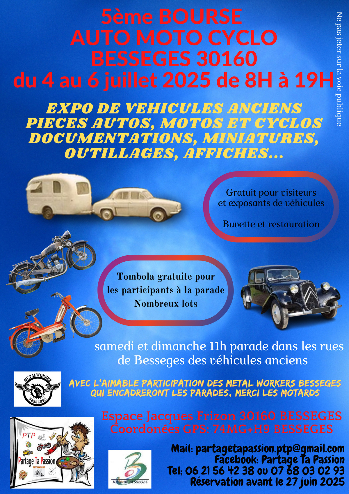 Bourse auto moto cyclo 04/07/2025 Du 4 au 6 juillet à l'espace Jacques Frizon / Foussignargues Source : Mairie de Bessèges