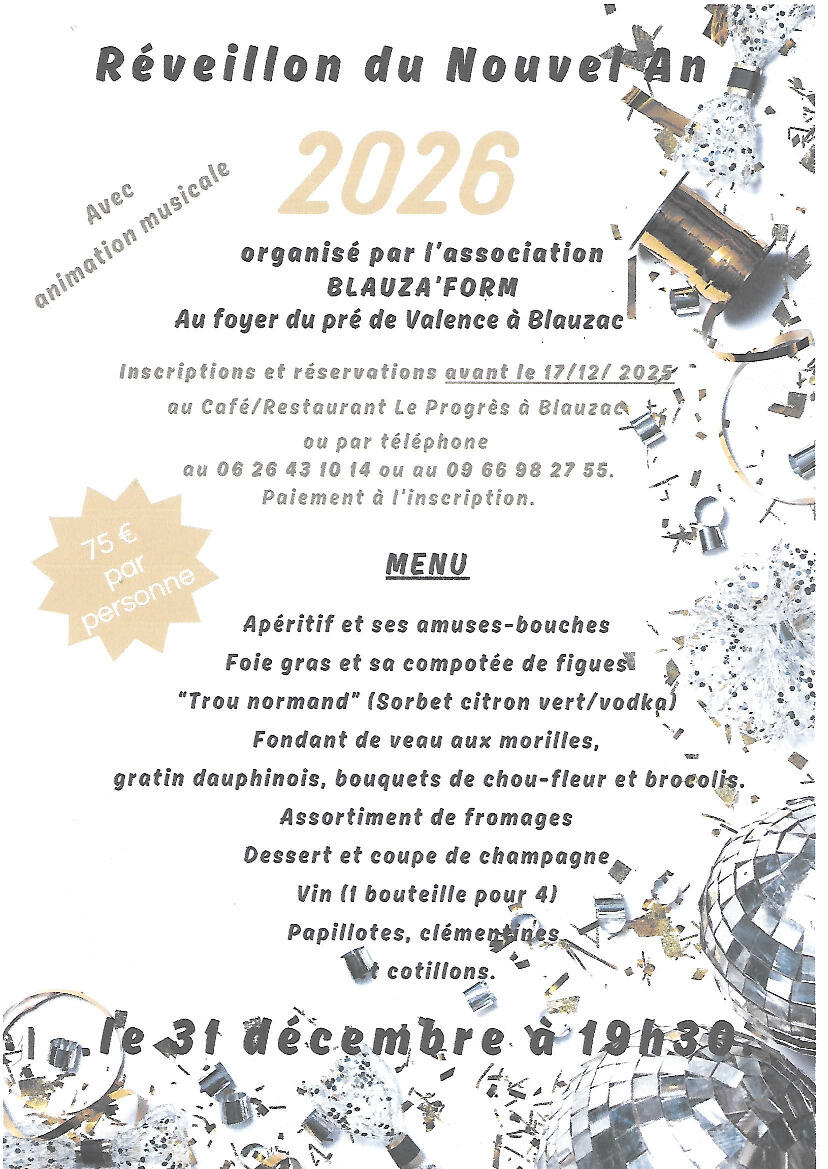 REVEILLON DU NOUVEL AN 2026 - au Foyer du Pré de Valance